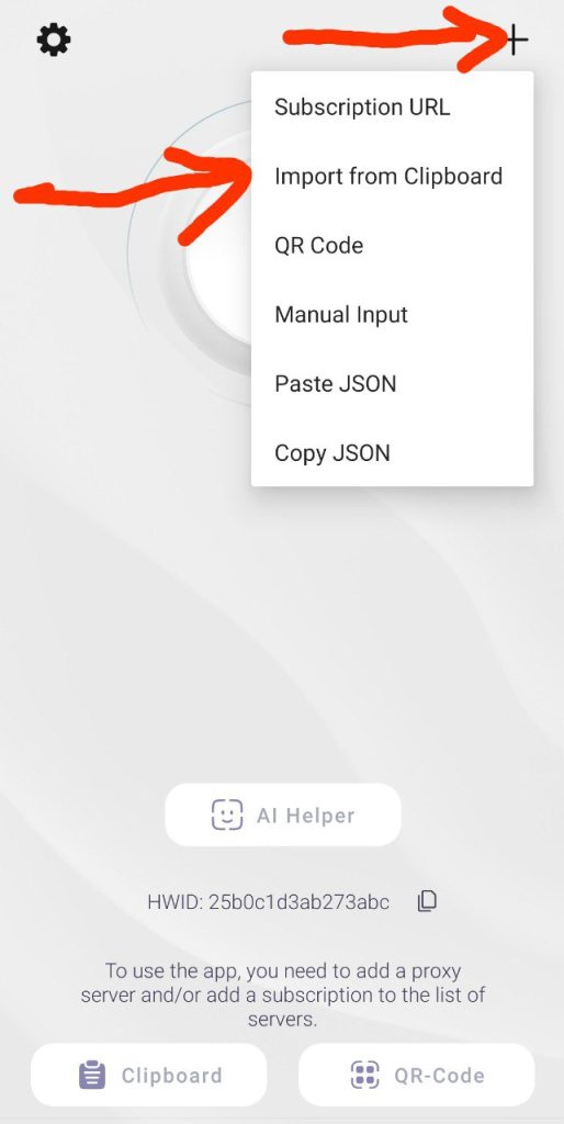 روی + بزنید – گزینه ی import from clip board را بزنید. ( طبق تصویر زیر )